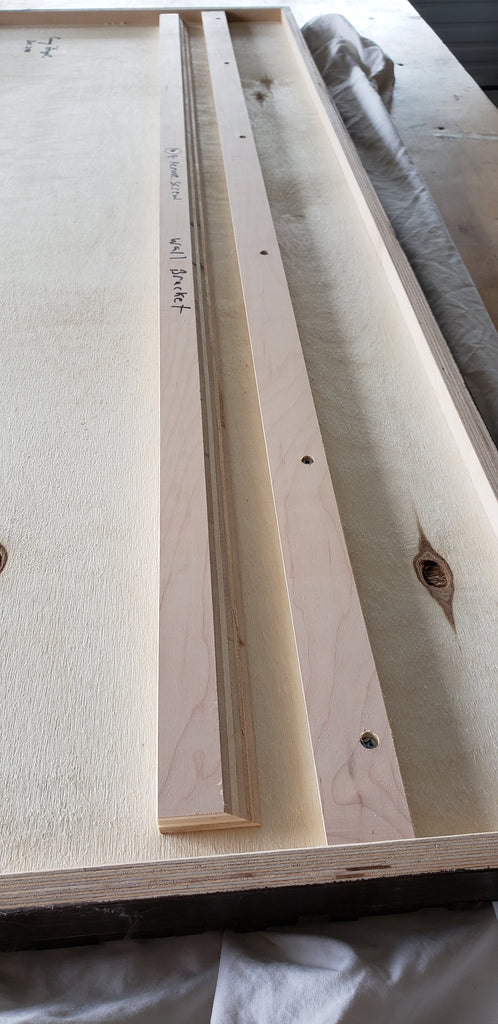 This piece is made up of 1/2” strips of various grey, browns from old reclaimed wood. I sprayed two coats of low voc water based sealer to protect the piece without taking away from the look and texture of the reclaimed wood.