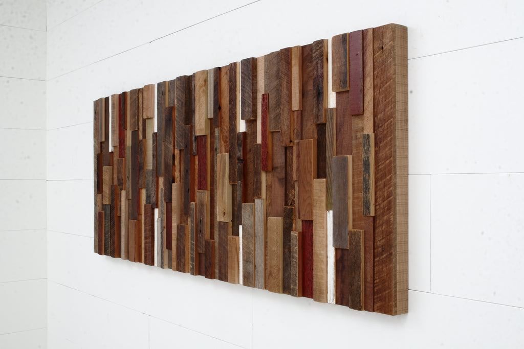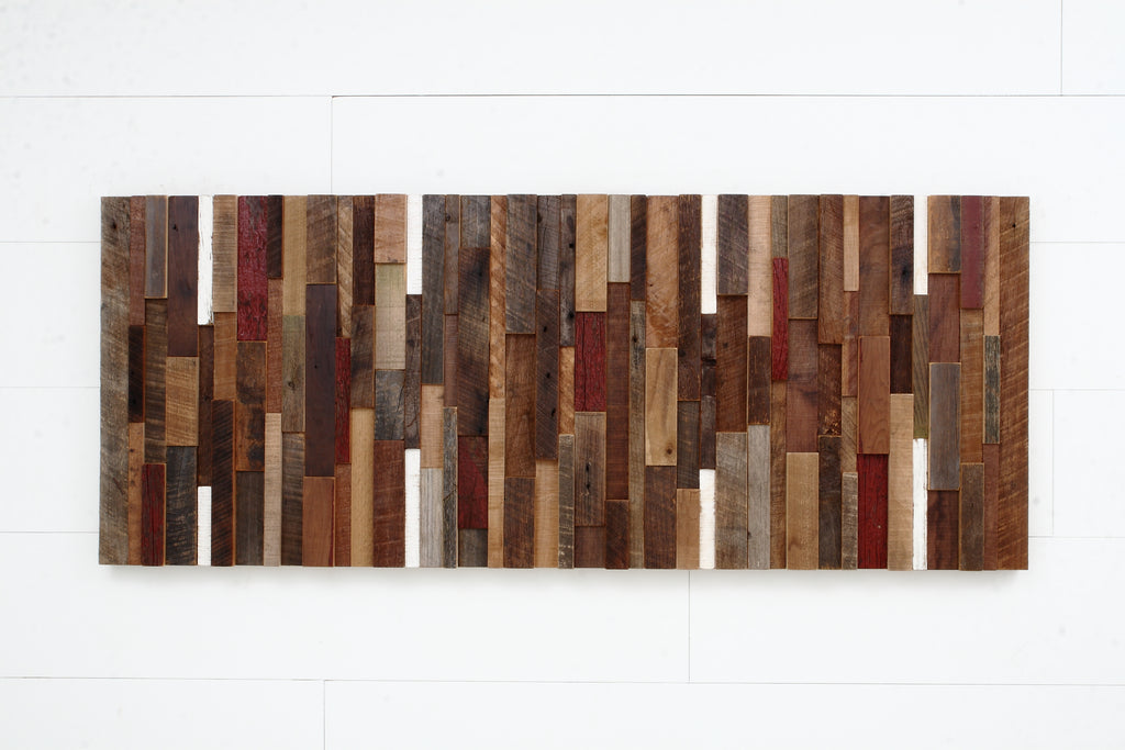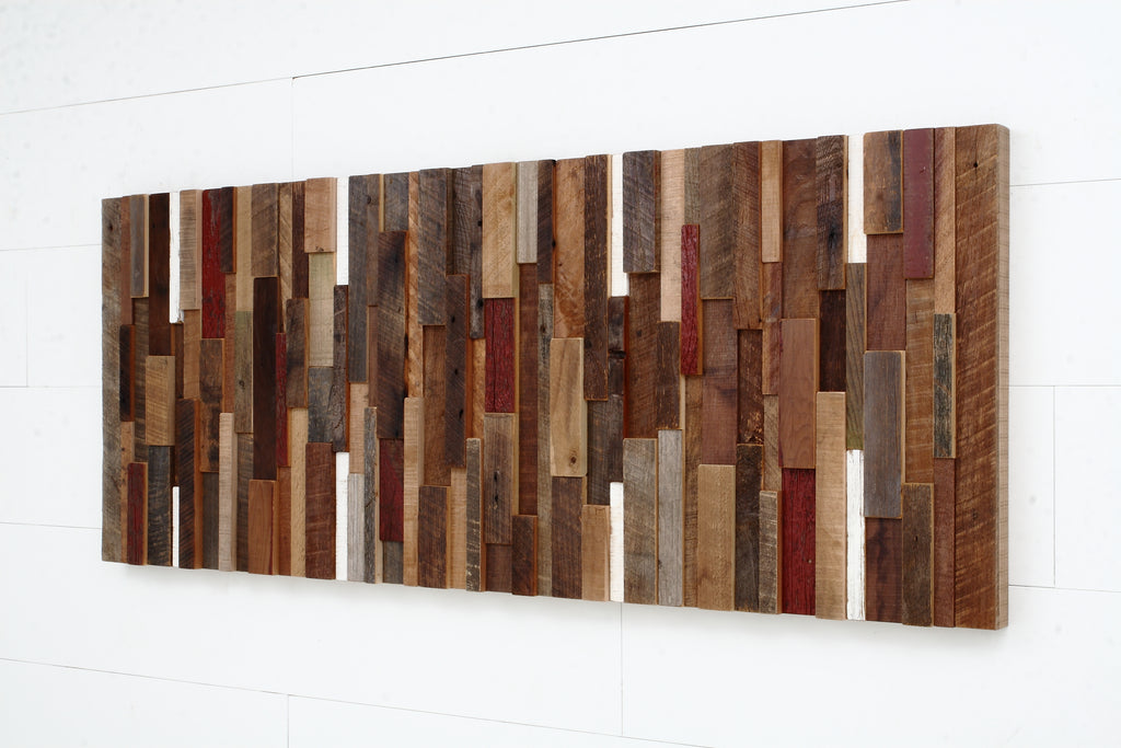 This artwork is constructed from reclaimed local barnwood that is over 80 years old. The artwork consists of multiple species of wood and each piece features the original paints. Each piece is hand selected for its character and natural patina to enhance the beauty of your piece. The red iron oxide paint is the most common barn wood preservation methods of the last 200+ years since the cost of the paint was very low. The darker brown natural woods were those aged within a barn, while grey boards have been weathered outside. White barnwood accents provide a nice contrast to the darker tones of the other woods. Each art piece then has two coats of Zero VOC water based sealer applied to preserve the beauty of the wood.